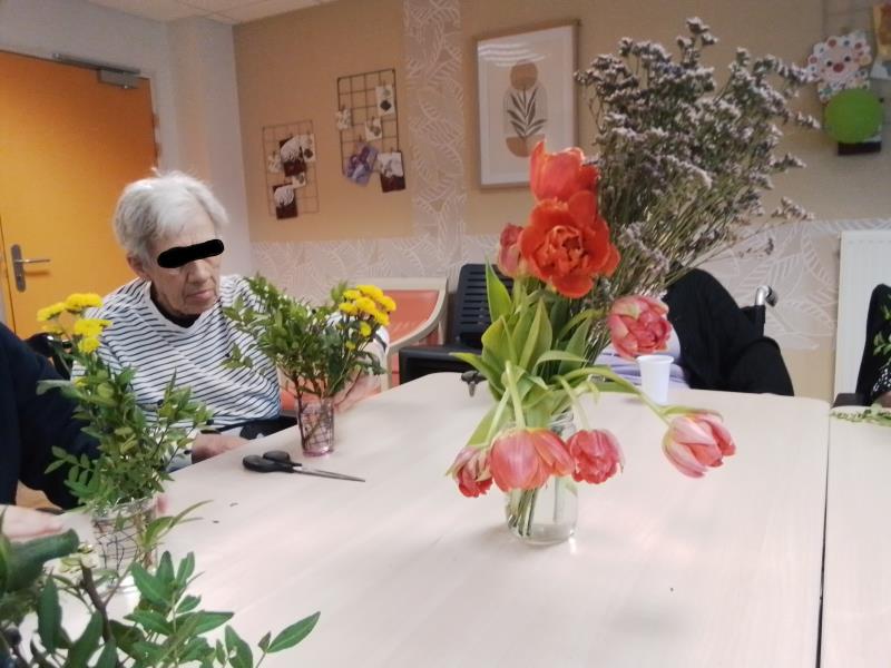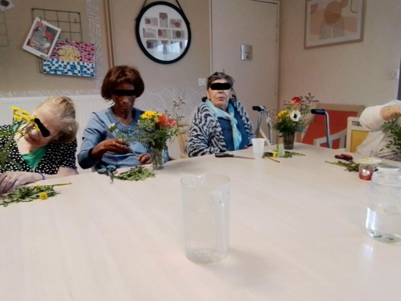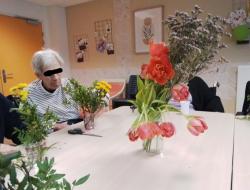 Les résidents ont ensuite laissé parler leur créativité en manipulant, en sentant et en observant les fleurs fraîches. Ce moment sensoriel a été particulièrement apprécié de tous.